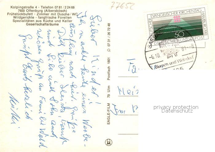 73867077 alte Postkarte Albersboesch Hotel Haus Hubertus Restaurant Jaegerstube Weingut postalisch gelaufen Erhaltung siehe scans [FriedD77] KatCode: 11110008317096