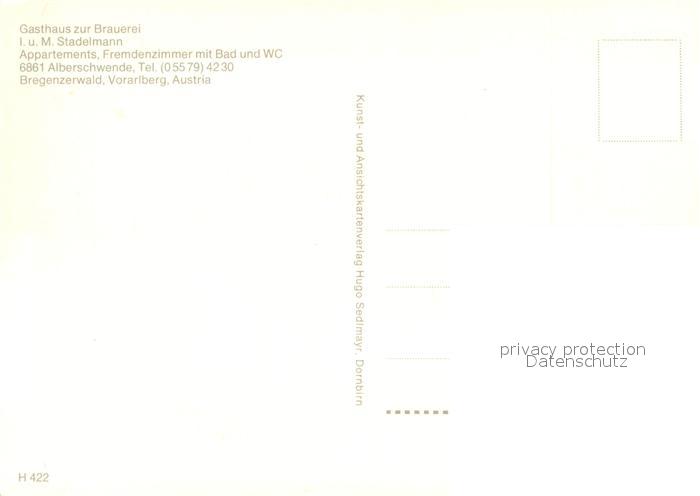73363807 Alberschwende Gasthaus zur Brauerei Bregenzerwald postalisch nicht gelaufen Erhaltung siehe scans [FriedD77] KatCode: 11390342080201
