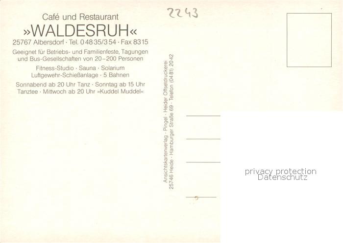73714712 Albersdorf Holstein Restaurant-Cafe Waldesruh Aussenansicht postalisch nicht gelaufen Erhaltung siehe scans [LiesaD40] KatCode: 11110001051001