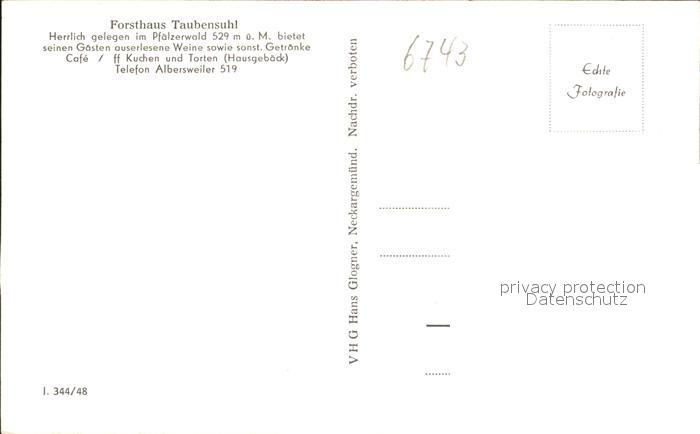 31713949 Albersweiler Forsthaus Taubenstuhl postalisch nicht gelaufen Erhaltung siehe scans KatCode: 11110007337001