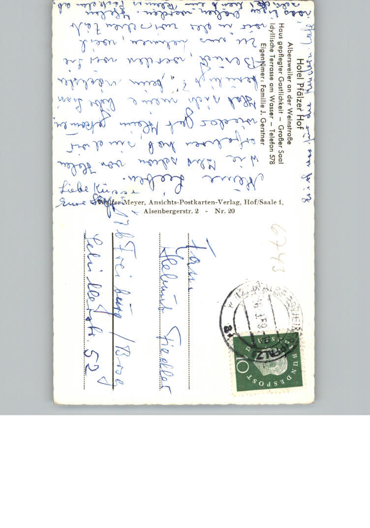 31147581 Albersweiler Hotel Pfaelzer Hof postalisch nicht gelaufen KatCode: 11110007337001