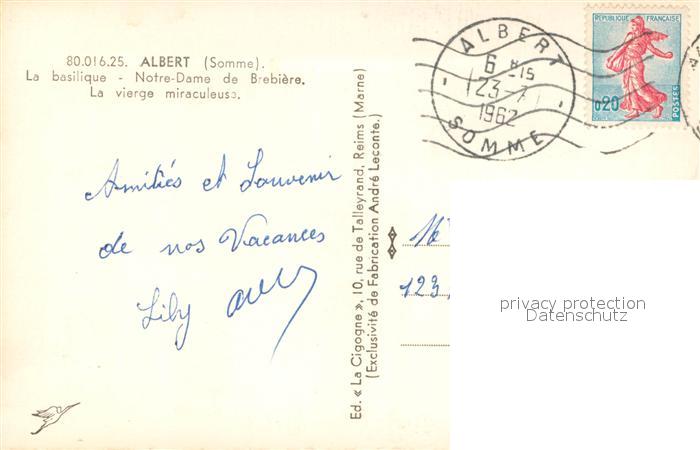 13639006 Albert Somme La basilique Notre Dame de Brebiere La vierge miraculeuse postalisch gelaufen Erhaltung siehe scans [WerneD78] carte postale Wern Katcode 11170080480016