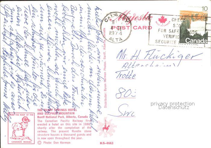 old postcard Alberta Banff Springs Hotel Banff Spring National Park postalisch gelaufen Erhaltung siehe scans