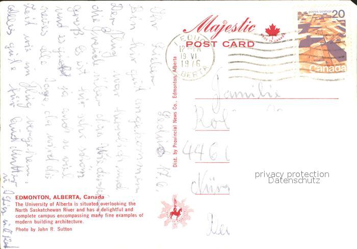 old postcard Alberta Fliegeraufnahme mit Universitaet postalisch gelaufen Erhaltung siehe scans