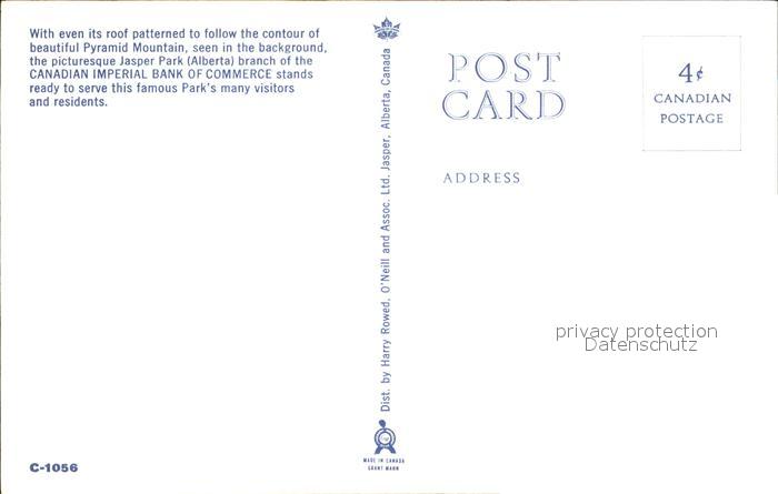Alberta Pyramid Mountain Canadian Imperial Bank of Commerce postalisch nicht gelaufen Erhaltung siehe scans