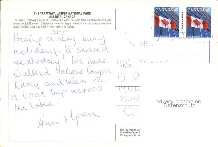 old postcard Alberta Tramway Jasper National Park postalisch gelaufen Erhaltung siehe scans