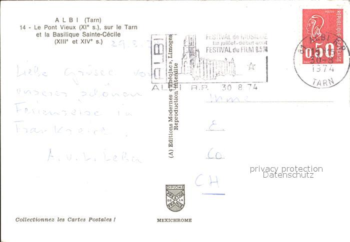 12349548 carte postale Albi Tarn Basilika Sainte Cècile postalisch gelaufen Erhaltung siehe scans KatCode: 11170081181004