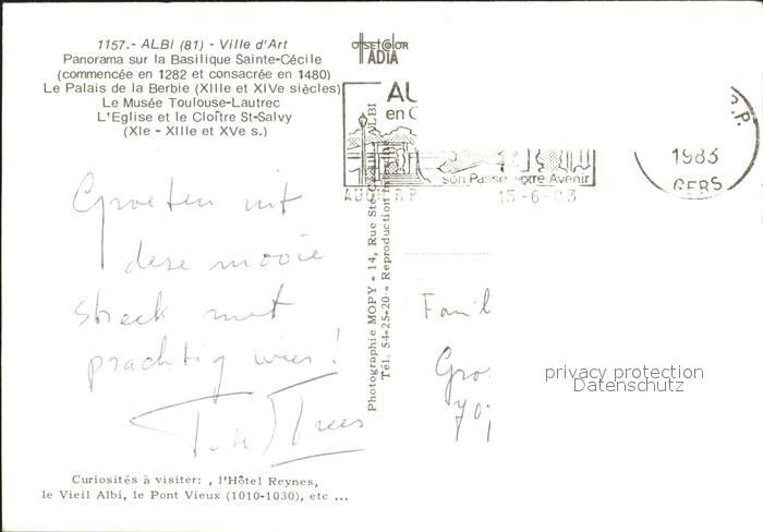 12267645 carte postale Albi Tarn Basilique Sainte Cecile Musee Toulouse Lautrec postalisch gelaufen Erhaltung siehe scans KatCode: 11170081181004