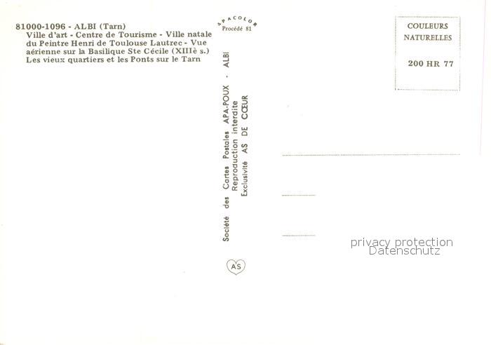 13526204 Albi Tarn Basilique Sainte Cecile XIIIe siècle vieux quartiers ponts sur le Tarn vue aérienne postalisch nicht gelaufen Erhaltung siehe scans [FriedD77] KatCode: 11170081181004