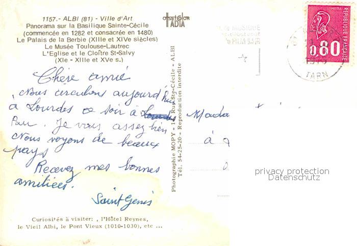 12851483 carte postale Albi Tarn Fliegeraufnahme Basilika postalisch gelaufen Erhaltung siehe scans [KathaD81] KatCode: 11170081181004