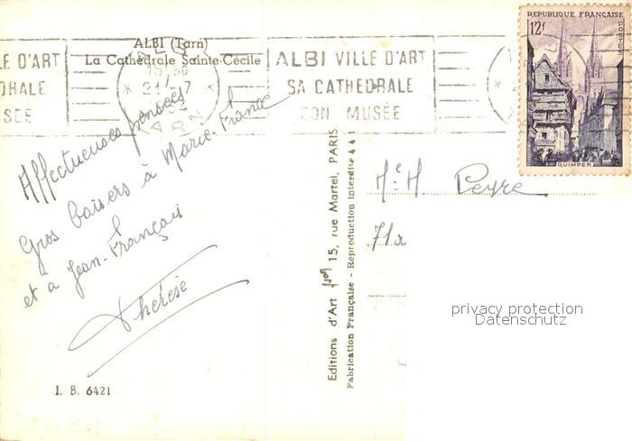 13578321 carte postale Albi Tarn La Cathedrale Sainte Cecile postalisch gelaufen Erhaltung siehe scans [WerneD78] KatCode: 11170081181004