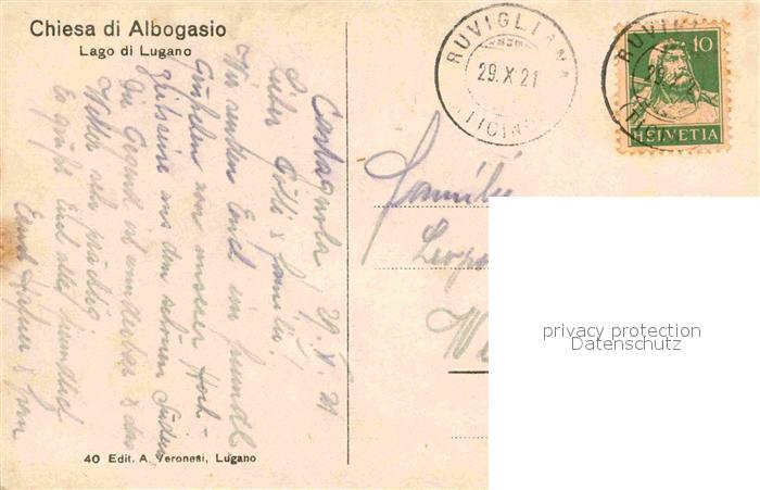old postcard Albogasio Chiesa Kirche postalisch gelaufen Erhaltung siehe scans [FriedD77]