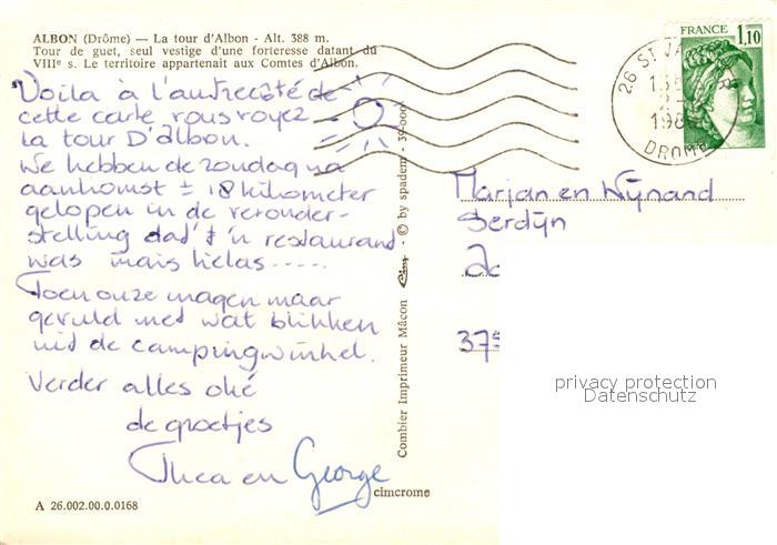 13052973 carte postale Albon Turm Panorama postalisch gelaufen Erhaltung siehe scans [KathaD81] KatCode: 11170026326002