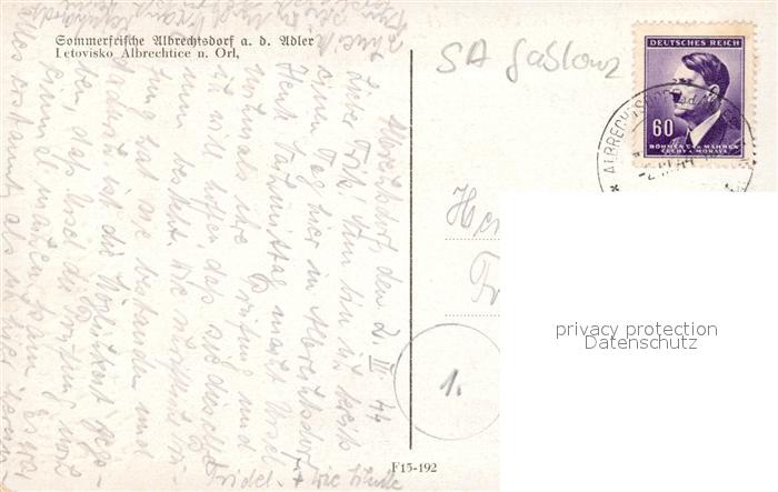 43252541 Albrechtsdorf Boehmen Sommerfrische Hotel Pension postalisch gelaufen Erhaltung siehe scans [FriedD77] old postcard Frie Katcode 11520