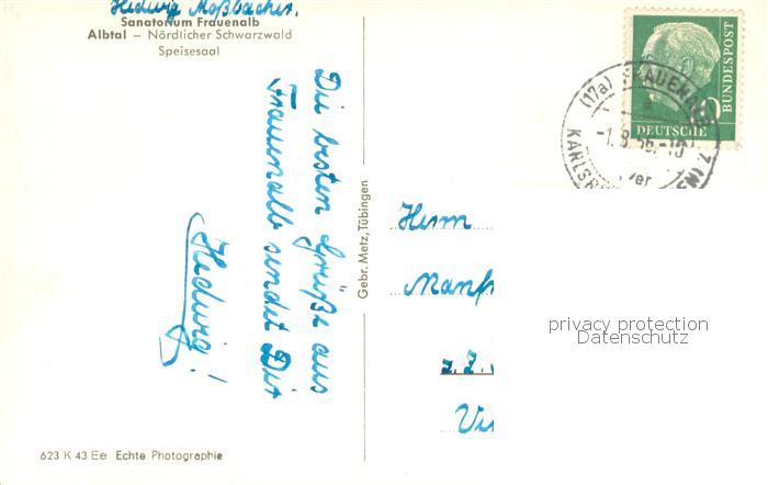 73759744 alte Postkarte Albtal St Blasien Sanatorium Frauenalb Innenansicht Speisesaal postalisch gelaufen Erhaltung siehe scans [LiesaD40] KatCode: 11110008337097