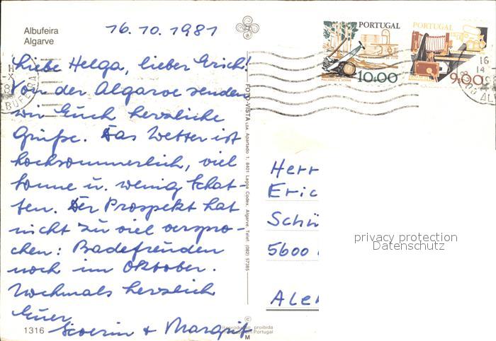 old postcard Albufeira Algarve Luftbild postalisch gelaufen Erhaltung siehe scans