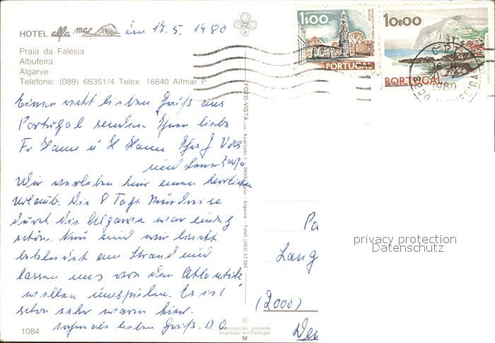 old postcard Albufeira Hotel Alfa Mar postalisch gelaufen Erhaltung siehe scans