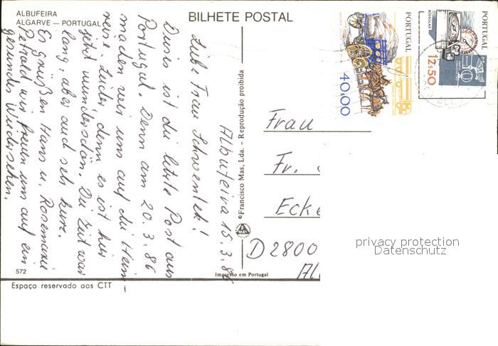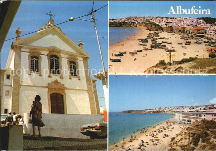 old postcard Albufeira Portugal Algarve Strand Bootsanlegestelle Kirche postalisch gelaufen Erhaltung siehe scans