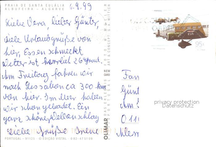 old postcard Albufeira Praia de Santa Eulalia postalisch gelaufen Erhaltung siehe scans [KathaD79]