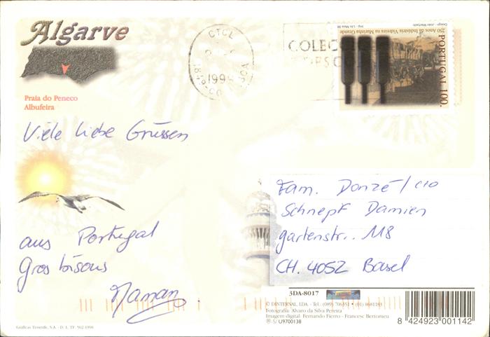 old postcard Albufeira Praia do Peneco Strand Algarve postalisch gelaufen Erhaltung siehe scans