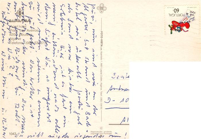 old postcard Albufeira PT Aparthotel auramar postalisch gelaufen Fliegeraufnahme Erhaltung siehe scans [FriedD77]