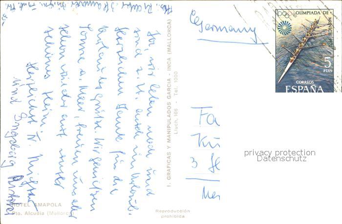 old postcard Alcudia Mallorca Hotel Amapola postalisch gelaufen Erhaltung siehe scans