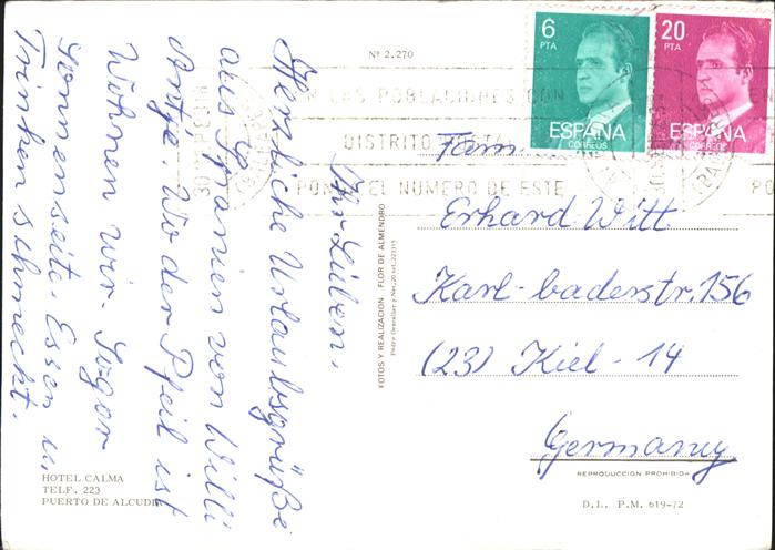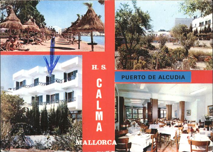 old postcard Alcudia Mallorca Hotel Calma Piscina Restaurante postalisch gelaufen Erhaltung siehe scans