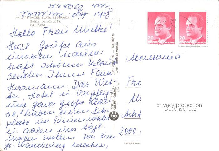 old postcard Alcudia Mallorca Hotel Playa Esperanza postalisch gelaufen Erhaltung siehe scans