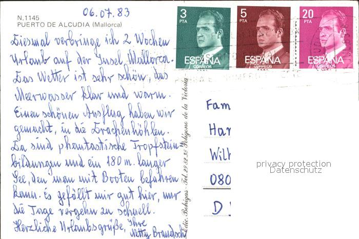 old postcard Alcudia Mallorca Strand Festung postalisch gelaufen Erhaltung siehe scans
