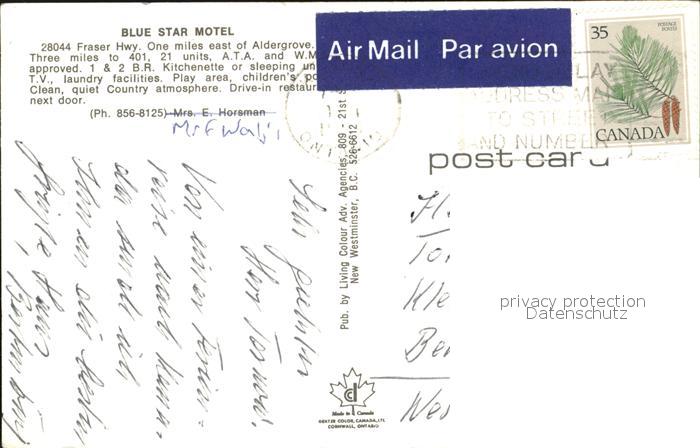 old postcard Aldergrove Canada Blue Star Motel postalisch gelaufen Erhaltung siehe scans