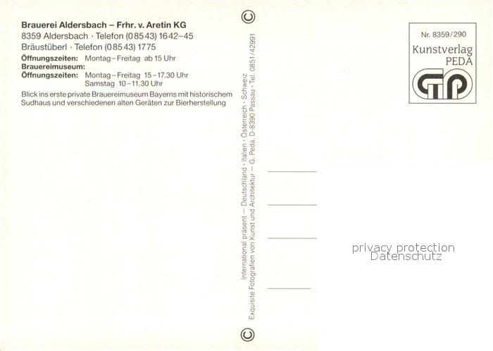 73653017 Aldersbach Brauereimuseum Aldersbach Braeustueberl postalisch nicht gelaufen Erhaltung siehe scans [WerneD78] KatCode: 11110009275114