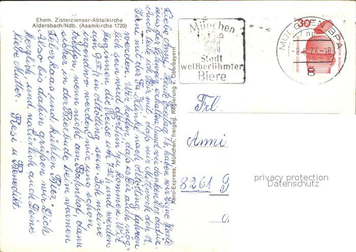 71927379 alte Postkarte Aldersbach Fliegeraufnahme Zisterzienser Abteikirche postalisch gelaufen Erhaltung siehe scans KatCode: 11110009275114
