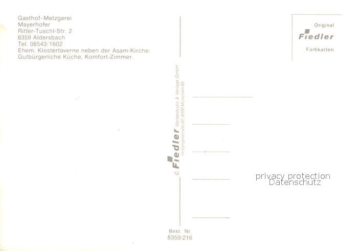 73739383 Aldersbach Gasthof Metzgerei Mayerhofer Freiterrasse Gastraeume Verkaufstheke postalisch nicht gelaufen Erhaltung siehe scans [WerneD78] KatCode: 11110009275114