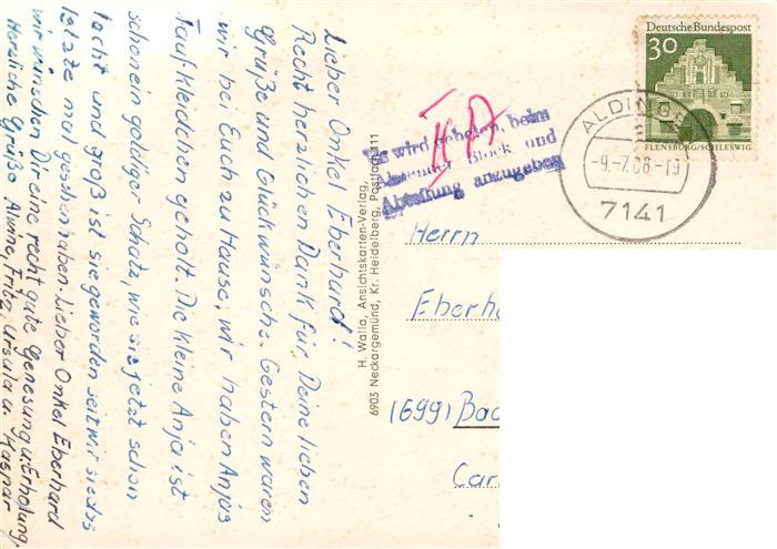 73871253 alte Postkarte Aldingen Kath Kirchpartie Neues Viertel Schule Neckarpartie postalisch gelaufen Erhaltung siehe scans [FriedD77] KatCode: 11110008327002