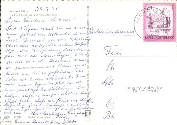 72465636 alte Postkarte Aldrans mit Innsbruck und Nordkette postalisch gelaufen Erhaltung siehe scans KatCode: 11390332070302