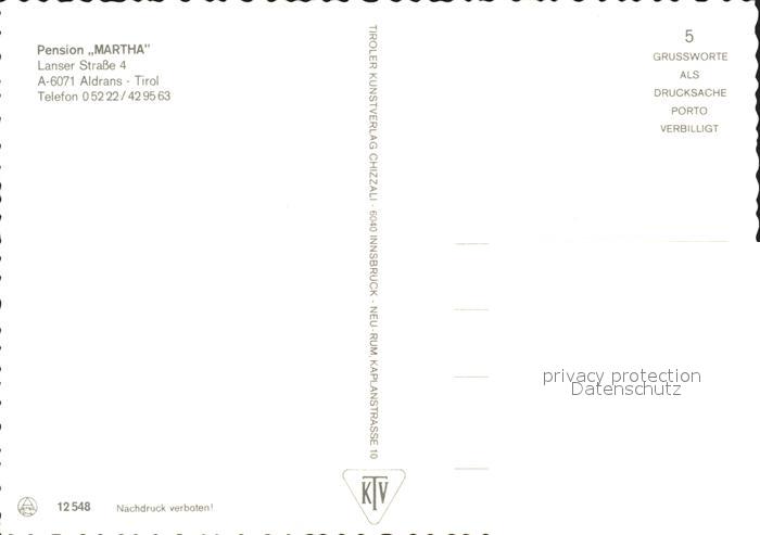 72251094 Aldrans Pension Martha postalisch nicht gelaufen Erhaltung siehe scans KatCode: 11390332070302