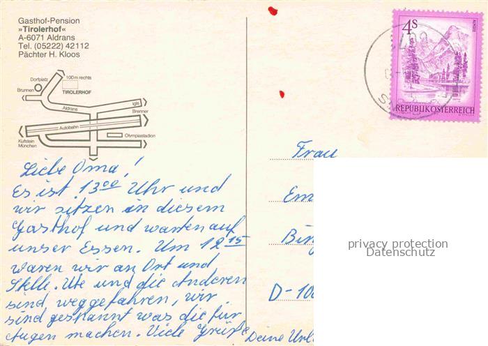 74109901 alte Postkarte Aldrans Tirol AT Gasthof Tirolerhof postalisch gelaufen Erhaltung siehe scans [WerneD78] KatCode: 11390332070302