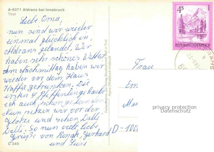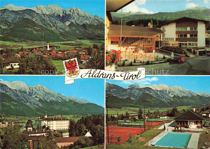 Aldrans Tirol AT Panorama Gemeindehaus Schwimmbad Tennisplatz postalisch gelaufen Erhaltung siehe scans [WerneD78] alte Postkarte Wern Katcode 11390332070302