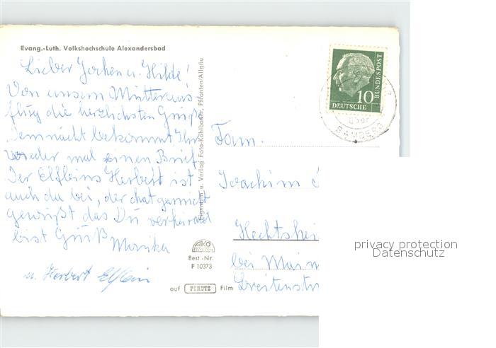 72143884 alte Postkarte Alexandersbad Bad postalisch gelaufen Erhaltung siehe scans KatCode: 11110009479111