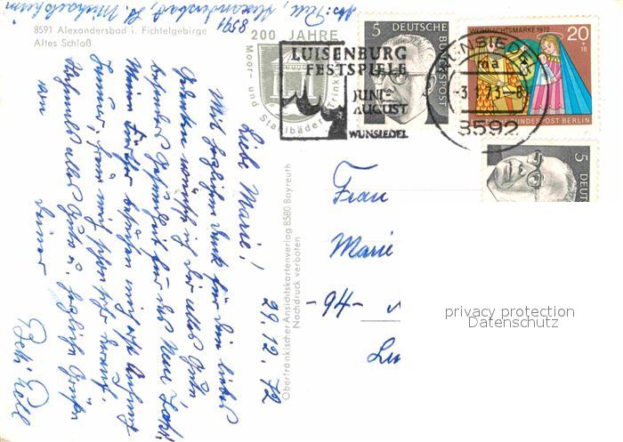 72616440 alte Postkarte Alexandersbad Bad Altes Schloss zur Weihnachtszeit Nachtaufnahme postalisch gelaufen Erhaltung siehe scans [FriedD77] KatCode: 11110009479111
