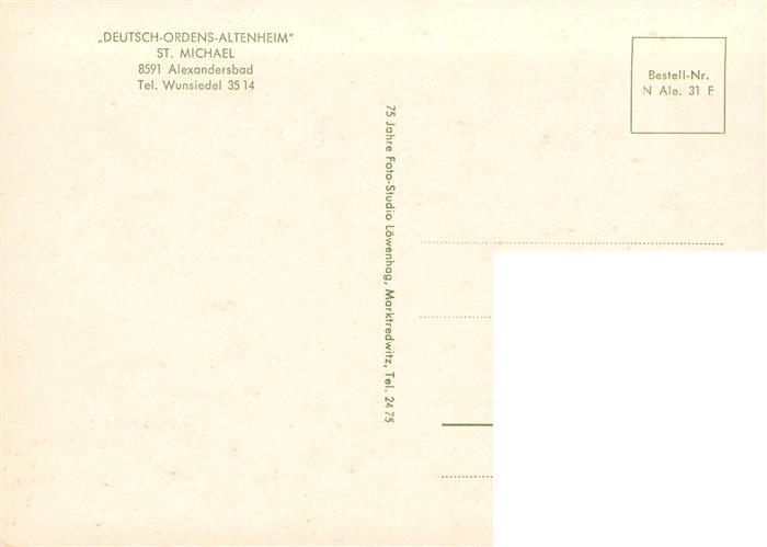 73949431 Alexandersbad Bad Deutschordens Altenheim St Michael postalisch nicht gelaufen Erhaltung siehe scans [WerneD78] KatCode: 11110009479111