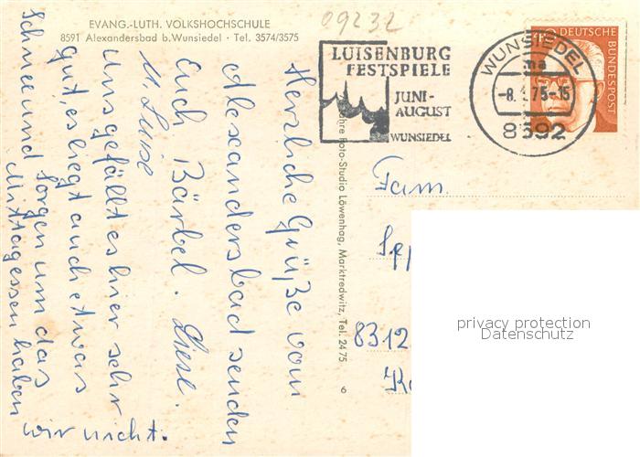 73707539 alte Postkarte Alexandersbad Bad Ev luth Volkshochschule postalisch gelaufen Erhaltung siehe scans [WerneD78] KatCode: 11110009479111