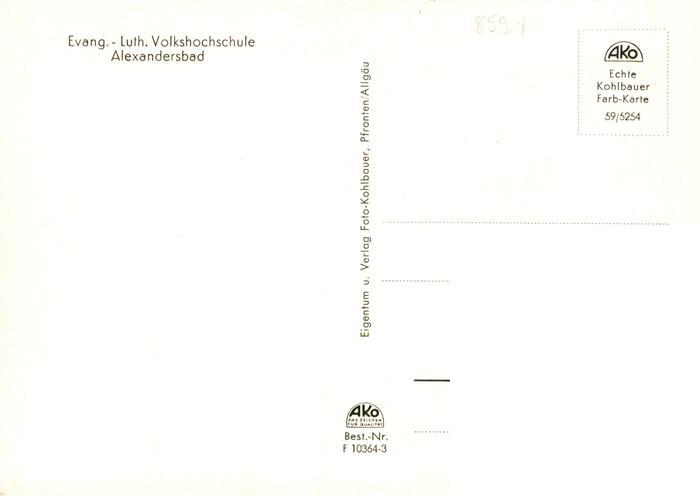 73949417 Alexandersbad Bad Ev Luth Volkshochschule postalisch nicht gelaufen Erhaltung siehe scans [WerneD78] KatCode: 11110009479111