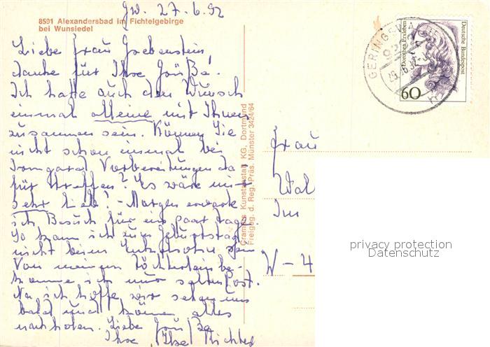 73542203 alte Postkarte Alexandersbad Bad Fliegeraufnahme postalisch gelaufen Erhaltung siehe scans [WerneD78] KatCode: 11110009479111