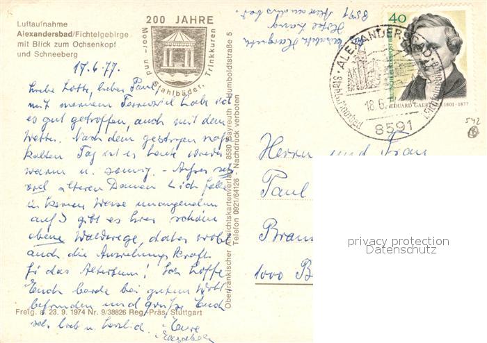 73174527 alte Postkarte Alexandersbad Bad Fliegeraufnahme postalisch gelaufen Erhaltung siehe scans [LiesaD40] KatCode: 11110009479111