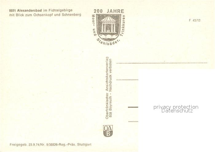 73683841 Alexandersbad Bad Fliegeraufnahme mit Ochsenkopf und Schneeberg postalisch nicht gelaufen Erhaltung siehe scans [LiesaD40] KatCode: 11110009479111