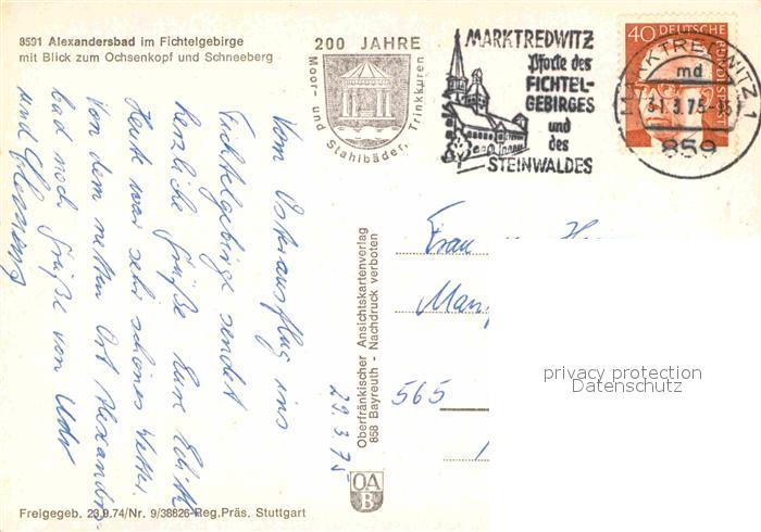 72841574 alte Postkarte Alexandersbad Bad Fliegeraufnahme mit Ochsenkopf und Schneeberg postalisch gelaufen Erhaltung siehe scans [LiesaD40] KatCode: 11110009479111