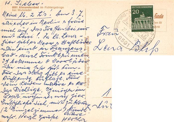 73944165 alte Postkarte Alexandersbad Bad Fliegeraufnahme postalisch gelaufen Erhaltung siehe scans [WerneD78] KatCode: 11110009479111