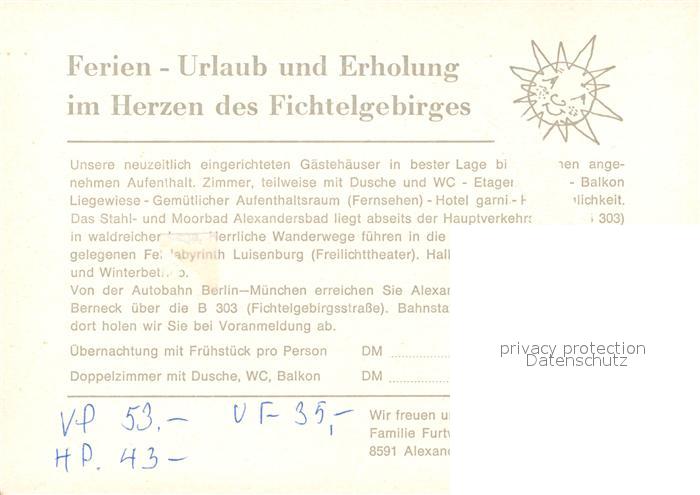 73173739 Alexandersbad Bad Gaestehaus Furtwaengler Schweizerhaus Haus-Andrea Luisenquelle postalisch nicht gelaufen Werbekarte (keine Postkarte) Erhaltung siehe scans [LiesaD40] KatCode: 11110009479111