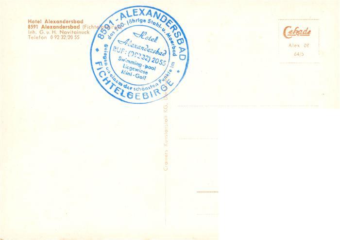 73878661 Alexandersbad Bad Hotel Alexandersbad Restaurant Minigolf postalisch nicht gelaufen Erhaltung siehe scans [FriedD77] KatCode: 11110009479111